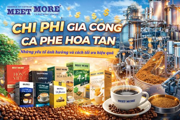 Bài viết dưới đây sẽ giúp bạn hiểu rõ chi phí gia công cà phê hòa tan, các yếu tố ảnh hưởng trực tiếp đến giá thành và giải pháp tối ưu thực tế từ công ty cà phê Meet More – đơn vị gia công cà phê hòa tan OEM uy tín cho nhiều doanh nghiệp tại Việt Nam.